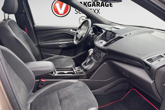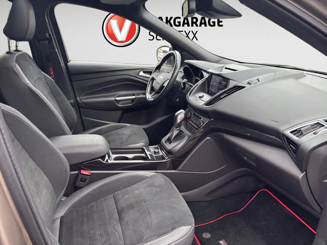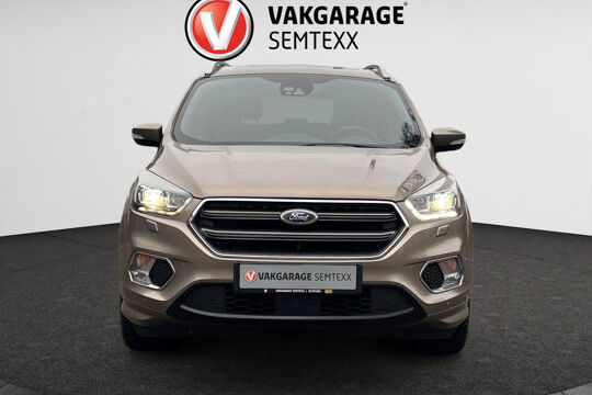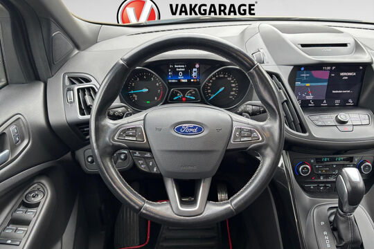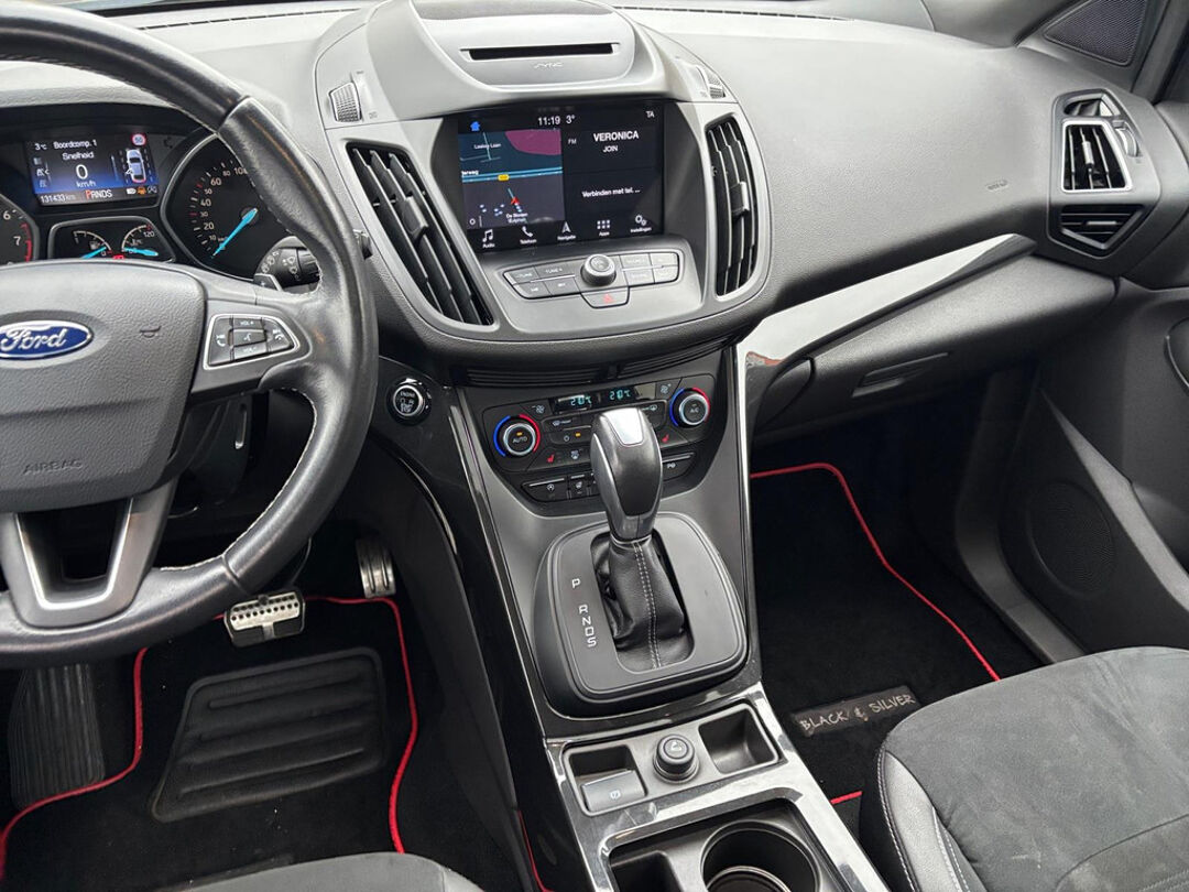 Autojournalisten zijn het er unaniem over eens. De Ford Kuga behoort tot de best sturende auto's van zijn klasse. Ook deze Kuga heeft de uitmuntende rijeigenschappen die u van een Ford mag verwachten. De krachtige motor geeft deze Ford uitstekende prestaties. Leren bekleding versterkt de topklasse uitstraling van het interieur. Op koude en donkere dagen zijn de verwarmbare voorstoelen een uitkomst. Chauffeur en bijrijder zitten stabiel in de scherpe bochten door de sportstoelen. Een handige voorziening op deze auto is de elektrische achterklep die u op afstand kunt openen. Fijn plusje, zeker in de kille dagen, is het verwarmd stuurwiel. Dankzij de xenonverlichting profiteert u in het donker van een krachtige en heldere lichtbundel. U wordt in deze auto ook getrakteerd op in delen neerklapbare achterbank, LED-achterlichten, verstelbare lendensteunen en snelheidsafhankelijke stuurbekrachtiging.