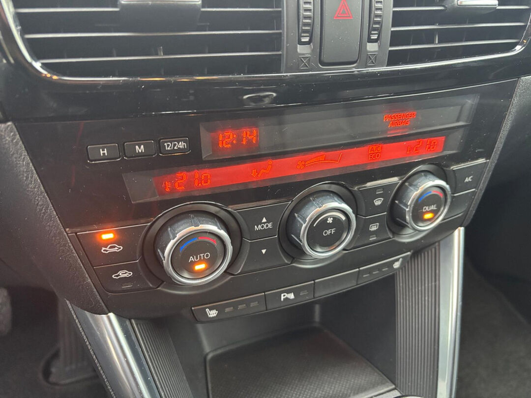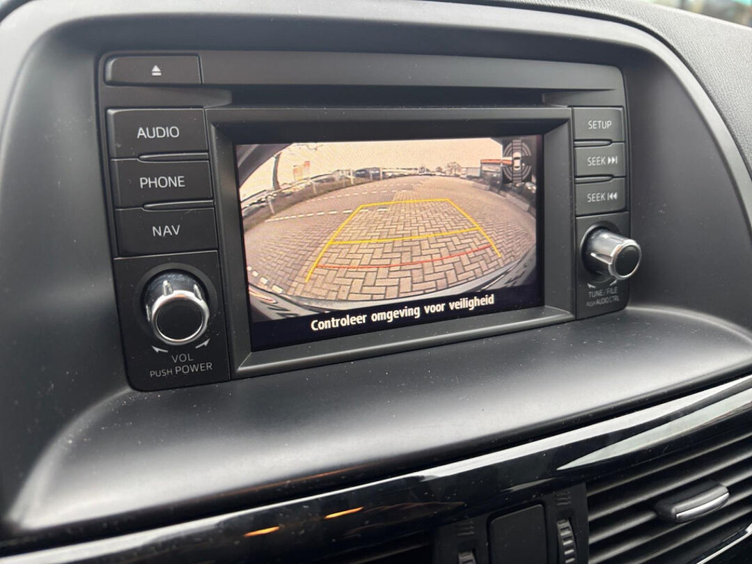 Zoals u mag verwachten van deze Mazda CX-5 is hij uitgerust met een reeks aan actieve veiligheidssystemen. Rijcomfort en zuinig rijden zijn mede afhankelijk van de juiste bandenspanning. Het bandenspanningscontrolesysteem houdt die permanent in de gaten. In druk verkeer en onoverzichtelijke situaties helpt het accident avoidance system mee om een aanrijding te vermijden. Geen gehannes meer met de handrem en gas geven bij stilstaan op een oplopend stuk weg. De hill hold control zorgt voor een geslaagde hellingproef.