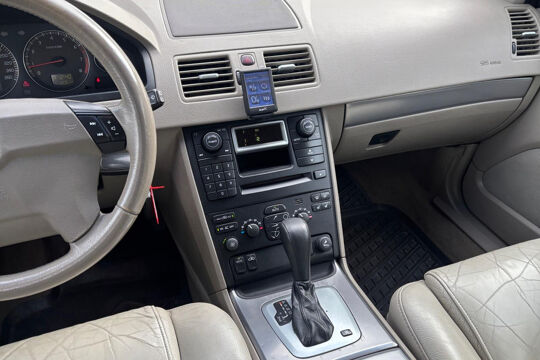 De look and feel van deze Volvo XC90 onderscheidt hem duidelijk van de massa. De uitstekende prestaties van deze auto komen van de vijfcilinder motor en de automatische transmissie. Van binnen is deze Volvo XC90 mooi uitgevoerd met een classy lederen interieur. Kijk, en die stoelverwarming, dat is nou echt comfort. Helemaal als het buiten winters aanvoelt. Natuurlijk behoren 17 inch lichtmetalen velgen, getint glas, in delen neerklapbare achterbank en verstelbare lendensteunen ook tot de uitrusting van deze complete auto.