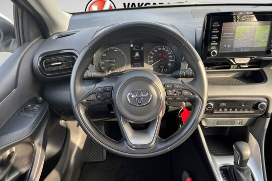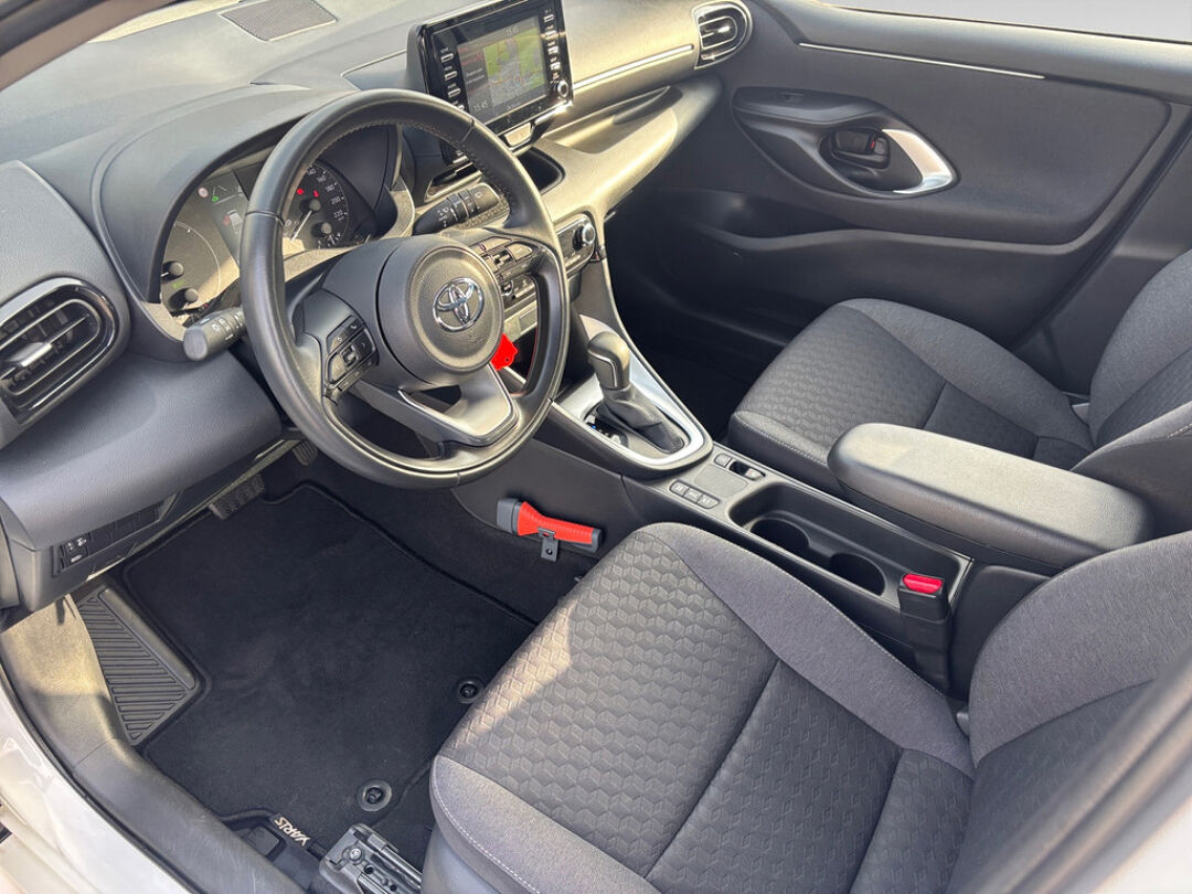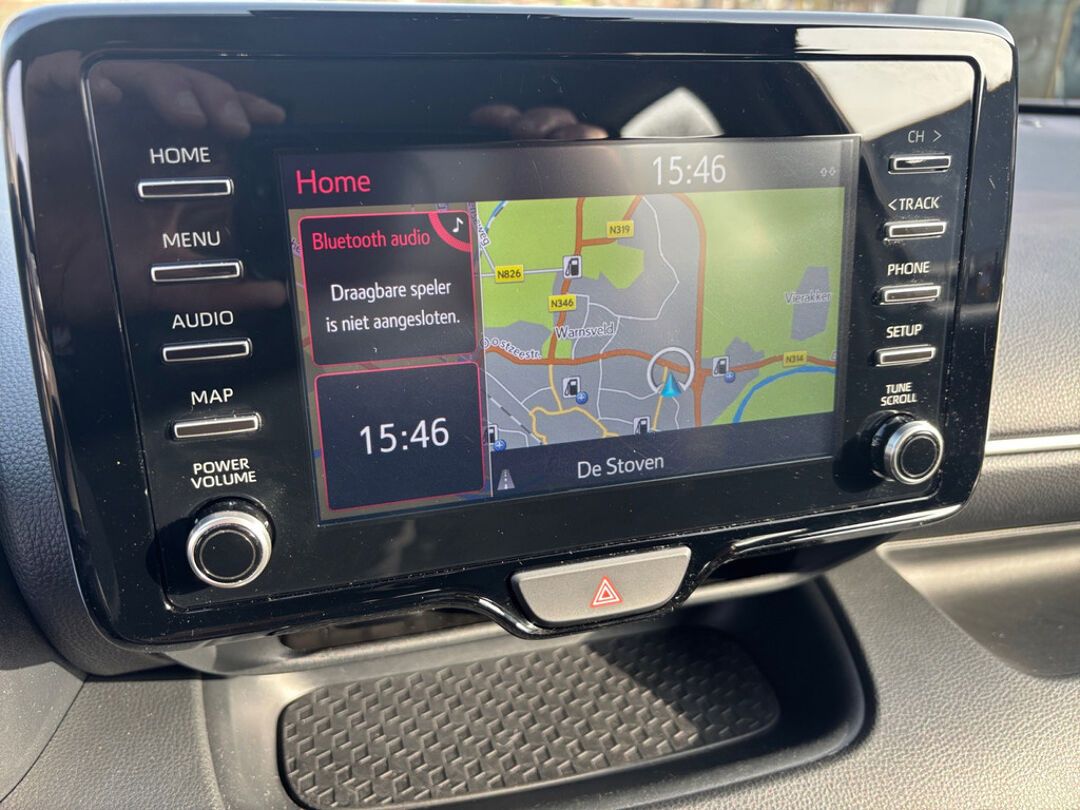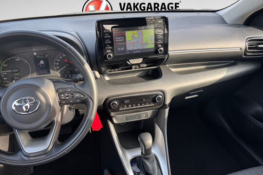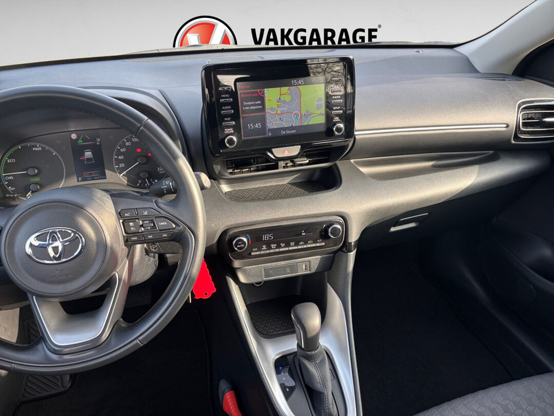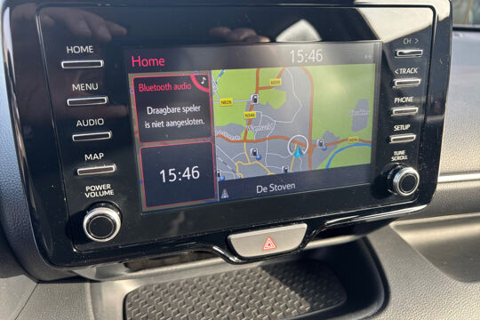 Altijd achter zicht, nooit meer nekkramp! De achteruitrijcamera maakt het supermakkelijk. Adaptive cruise control houdt de ingestelde snelheid vast en houdt automatisch afstand tot uw voorligger. Communiceren met uw auto? Dat gaat via remote services. Met uw smartphone maakt u waar dan ook contact om allerlei functies te checken of te activeren. In deze Yaris vindt u schakelaars op het stuur om het navigatiesysteem te bedienen en het audiosysteem met DAB-ontvangst. Bij de luxe van deze auto hoort ook automatische airconditioning. Ook regensensor, buitentemperatuurmeter, lederen stuur, isofix-aansluiting, centrale deurvergrendeling met afstandsbediening en boordcomputer zijn aan boord.